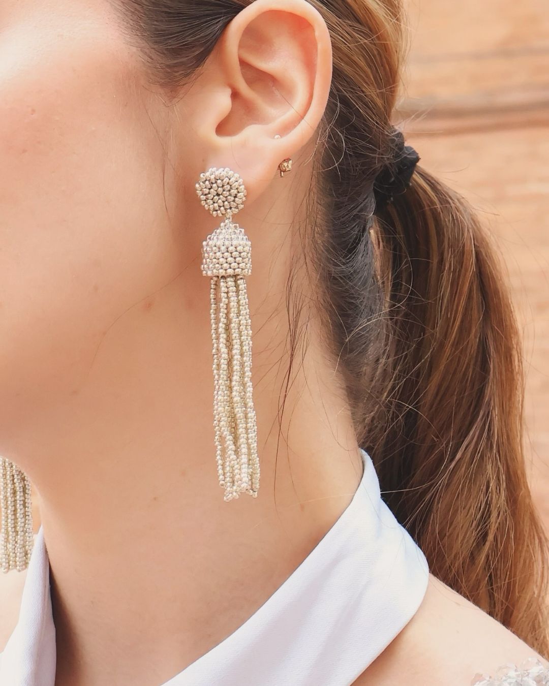 Aretes bolas mini largas dorado-beige