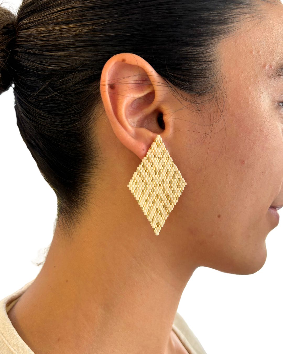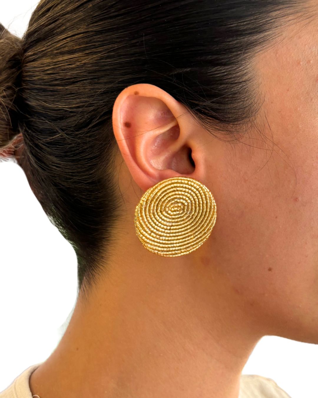 Aretes bolas mini largas dorado-beige