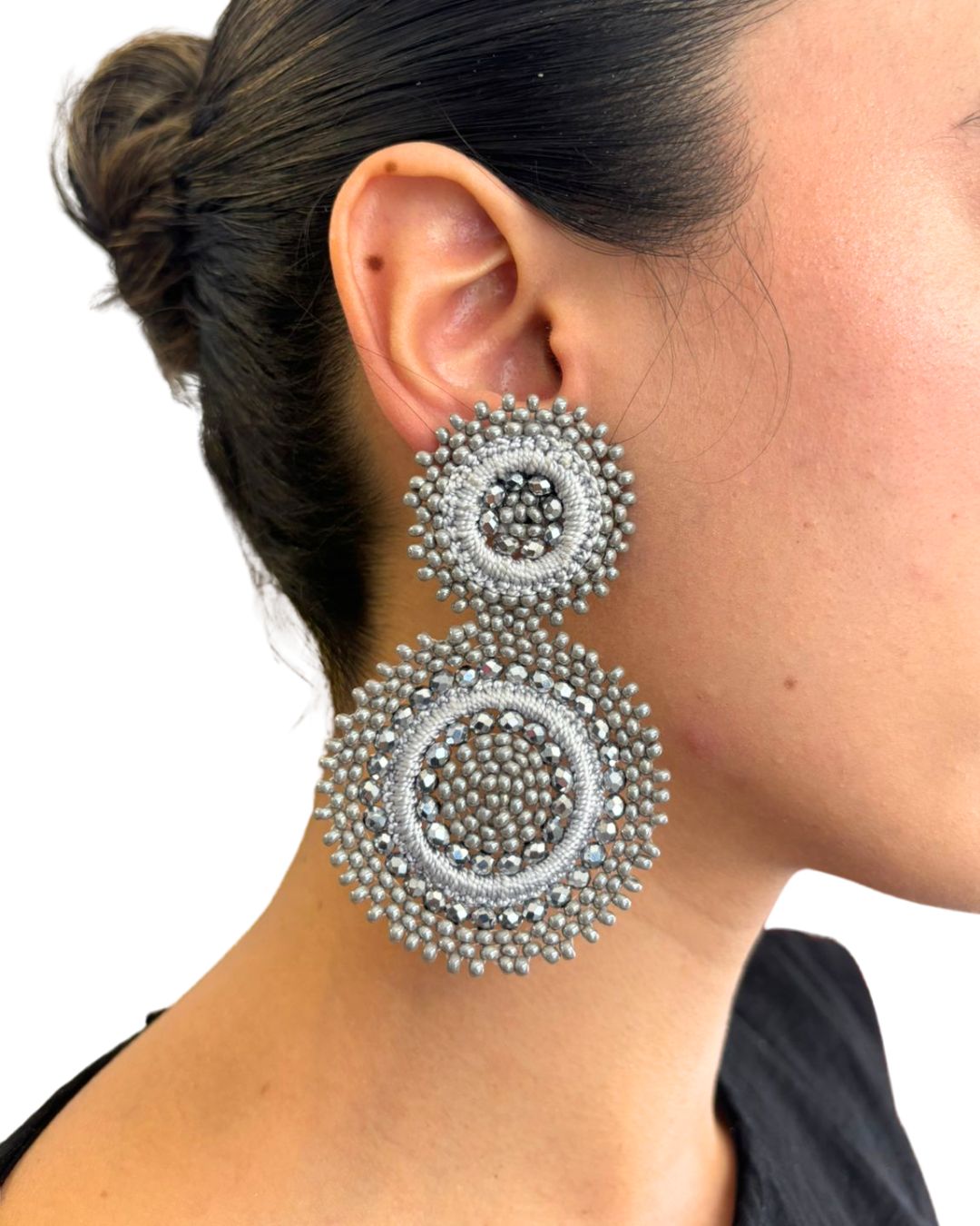 Aretes tejidos en murano plateado