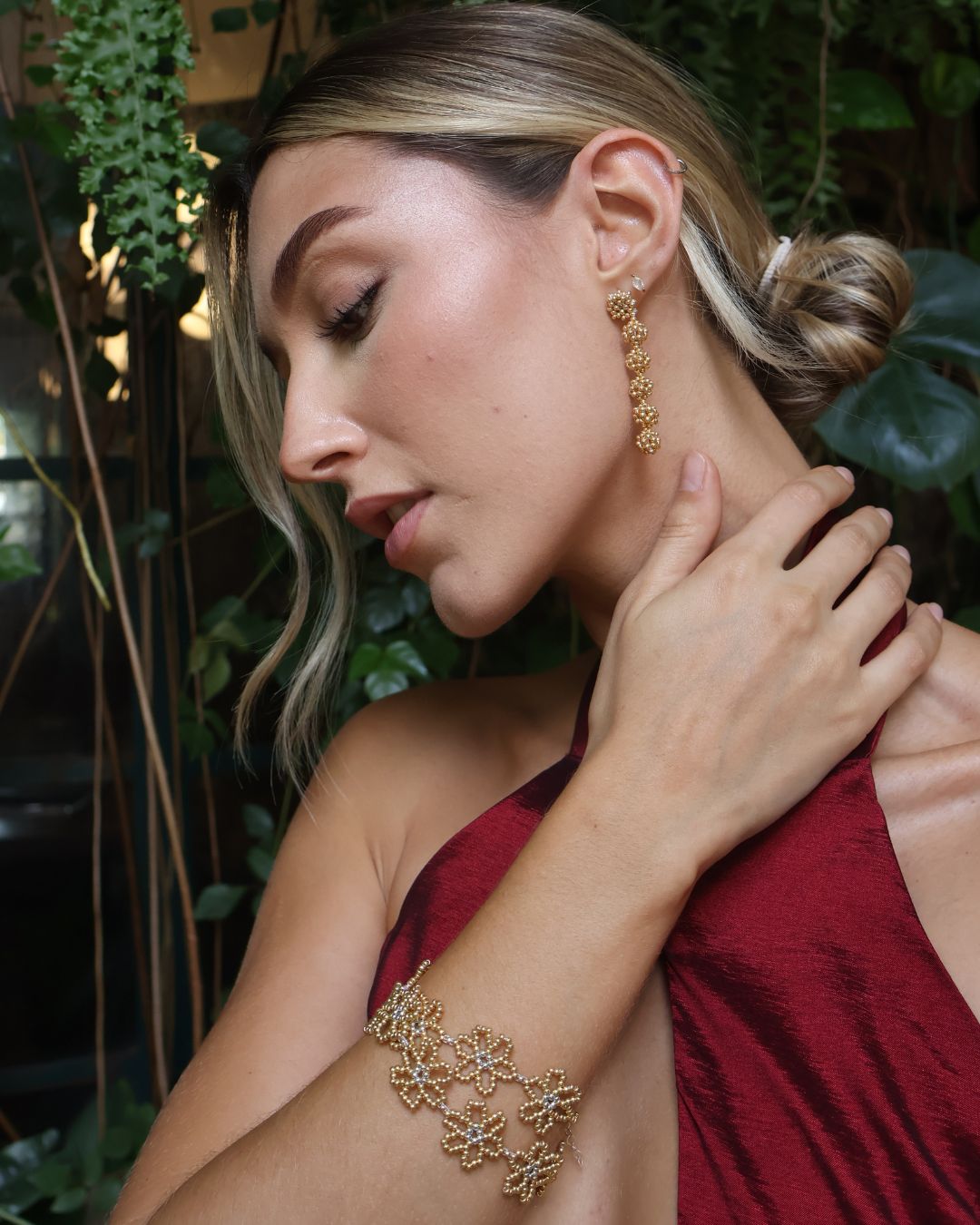Aretes flores tejidas